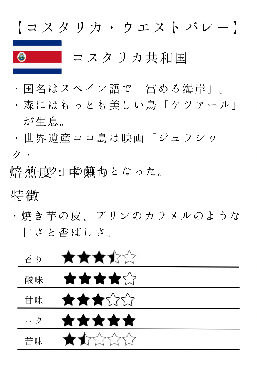 【2月20日(金)配達】コスタリカ・ウエストバレー(中煎り)100g