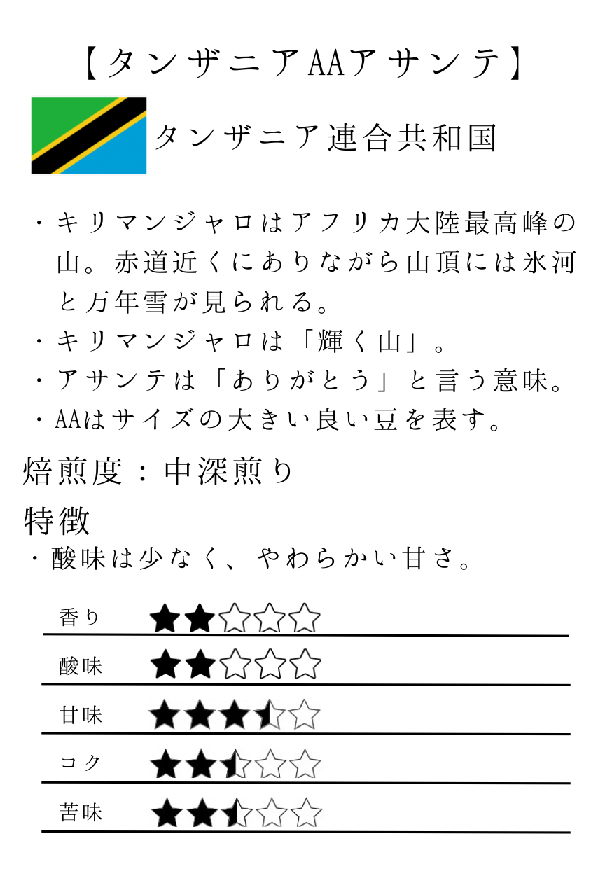 【2月27日(金)配達】タンザニアAAアサンテ(中深煎り)100g
