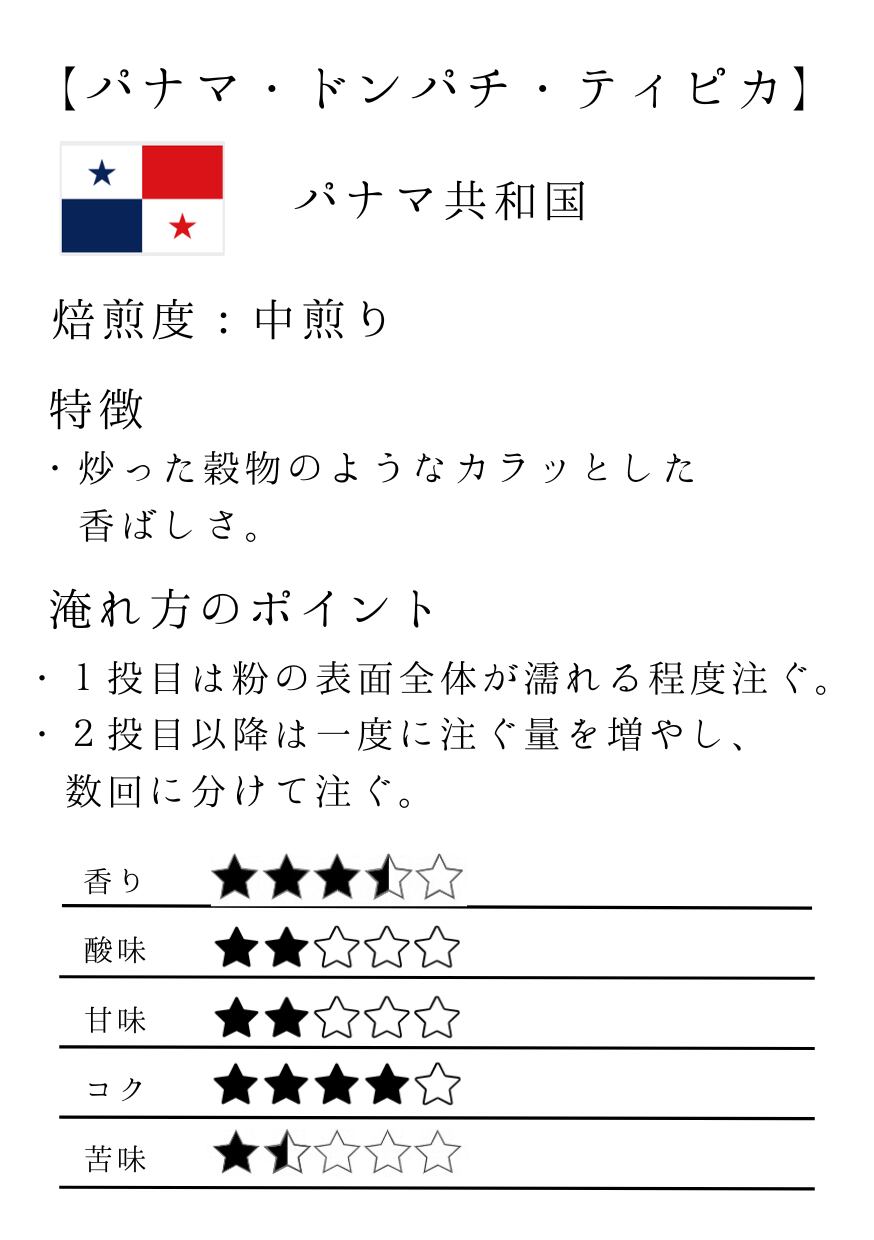 穀物を炒ったときのような香ばしさと、やさしい酸味が特徴のパナマ・ドンパチ・ティピカ。