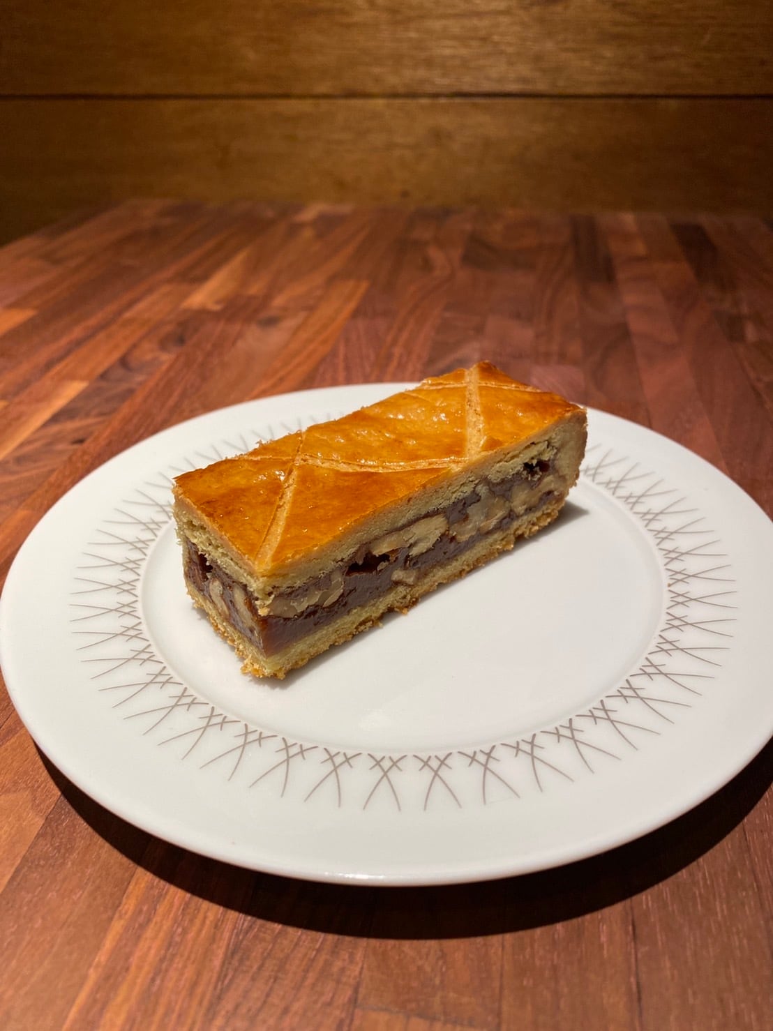 キャラメルをまとったクルミを芳ばしいクッキー生地でサンドしたスイスの伝統菓子です。